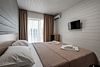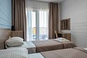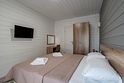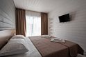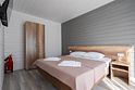 ТВ с плоским экраном, шкаф, две тумбочки, зеркало, чайник, холодильник, кондиционер. Санузел: душ, раковина, унитаз, полотенца, туалетные принадлежности. Общая площадь номера 20 м².
