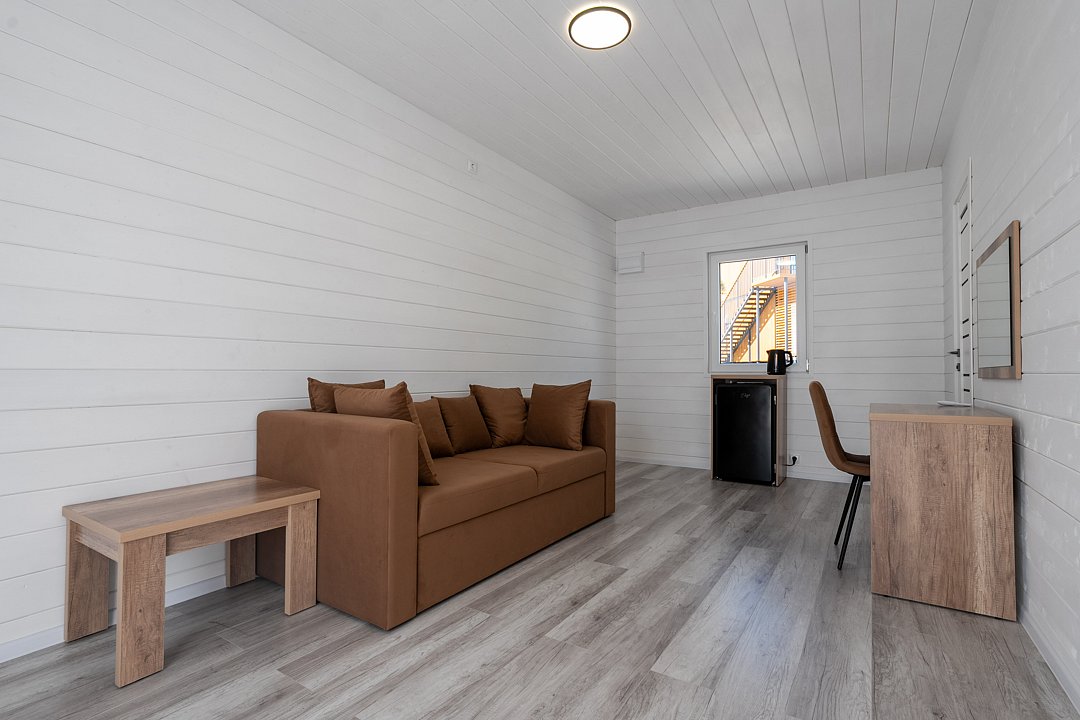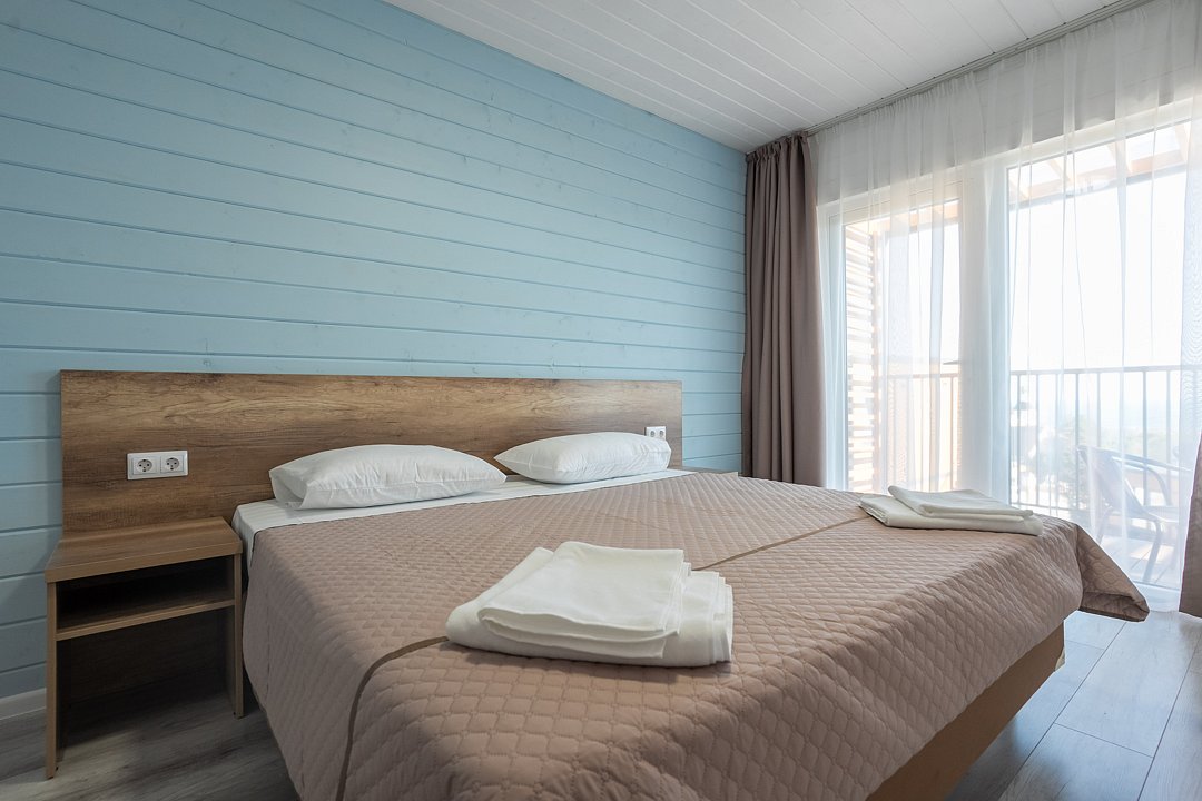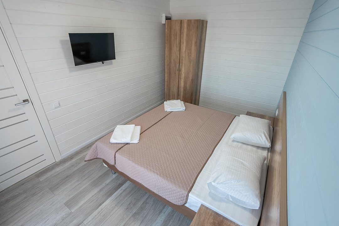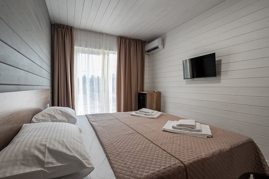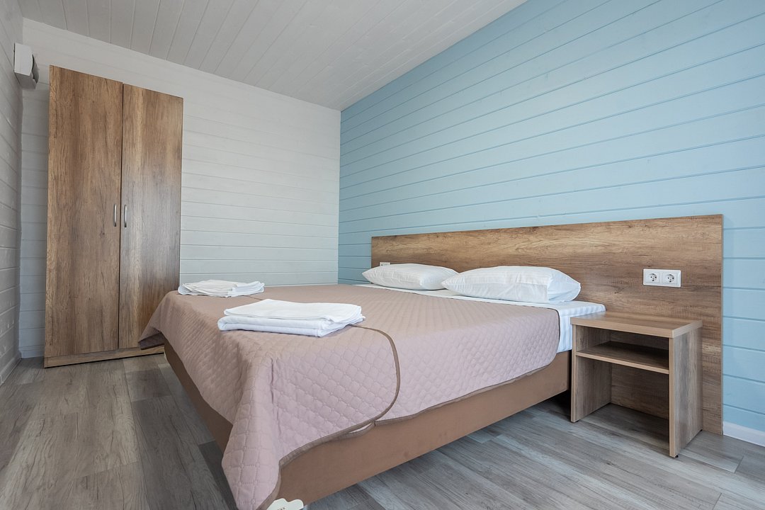 Для размещения гостей предусмотрены современные двухэтажные коттеджи с тщательно продуманными номерами: двухместными, четырехместными и люксами у бассейна. На территории комплекса расположен подогреваемый бассейн с шезлонгами, оборудованная кухня и охраняемая парковка, что создает все условия для комфортного и спокойного отдыха.