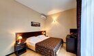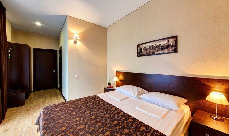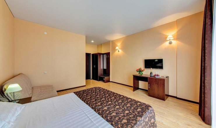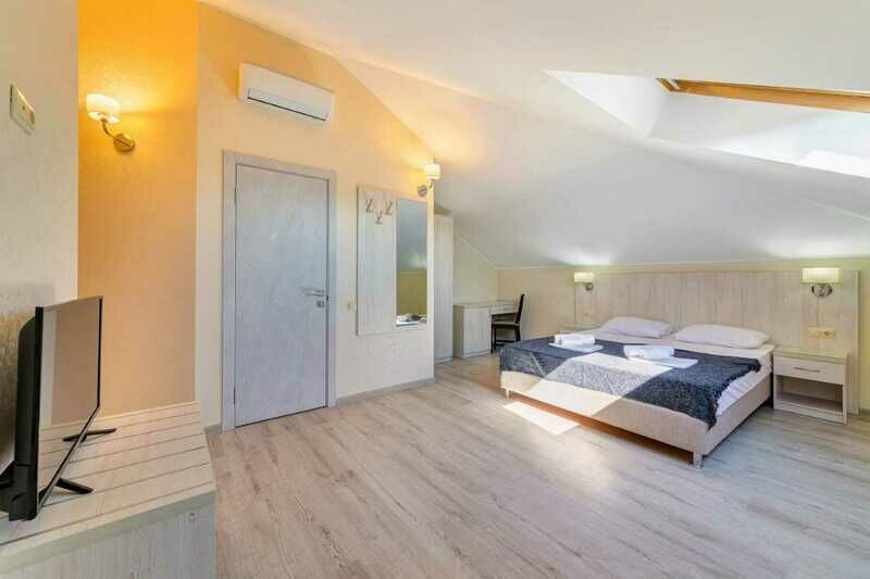 Трехэтажный корпус занимает закрытую благоустроенную территорию. Гостей ожидают 2-х местные номера Стандарт и Семейный с возможностью организации дополнительного места. В комнатах современный интерьер, удобный мебельный гарнитур, есть вся необходимая техника и санузел