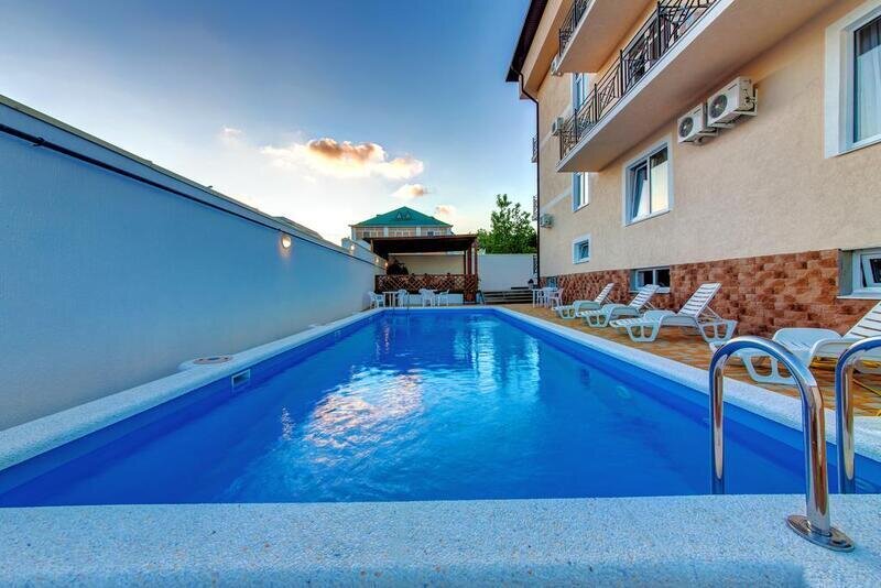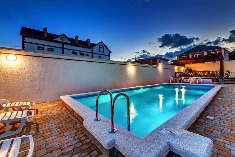 В гостевом доме обустроена обеденная зона, есть уютная уличная терраса и место для барбекю. В распоряжении гостей открытый бассейн, по периметру которого расставлены шезлонги для отдыха. Для автовладельцев возле корпуса организована стоянка, на территории доступен беспроводной интернет.