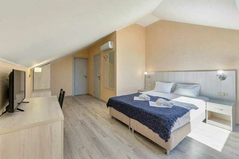 Путешествие с паройВсе было супер!Очень чуткий и отзывчивый персонал, есть возможность общаться через WhatsApp. В столовой вкусная и недорогая еда. Чистый и глубокий бассейн, светлый и приятный номер, как на фото! Чистый двор с удобными лежаками и верандой. Недалеко от моря (в районе 10 минут). В номере исправно работает кондиционер, есть горячая вода.