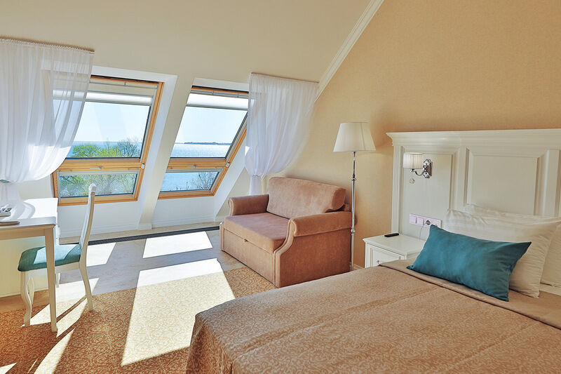 июнь 2022 г.Это пять звёзд!Великолепный новый отель с шикарной отделкой и отличным персоналом! В Джуниоре (очень просторный номер, есть даже гардеробная комната) на 4-ом этаже из мансардных окон с балкончиками - вид на море! Вкусные завтраки: два блюда на заказ + небольшой шведский стол. Имеются также небольшой бассейн и бесплатная парковка рядом с отелем.