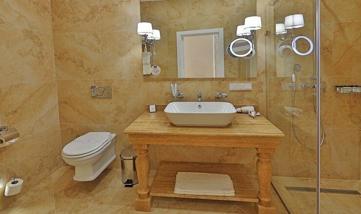 телевизор, интерактивное телевидение, Wi-Fi, интернет, телефон, кондиционер, система климат-контроля, светильник, настольные лампы, фен, будильник, электронные замки, утюг, душевая кабина, санузел, банные принадлежности, халаты, банные полотенца, пляжные полотенца, тапочки, гигиенические средства, косметические средства, балкон, кровать «King size», две односпальные или большая двуспальная кровать, диван, шкаф для одежды, гардеробная, багажная тумба, зеркало, ковер, эксклюзивная мебель, мини-бар, чайный набор, информационная карта, меню, сейф, чайник, унитаз, раковина, ковровое покрытие, душ, высокие потолки, стаканы, столовые приборы, кофейный столик, стул, стол, тумба, туалетный столик, туалетные средства, туалет, сплит-система, панорамные окна, цифровое тв, внутренний телефон, шкаф-купе, гостиничная парфюмерия, телевизор со Smart TV, рабочий стол, кресло-кровать, шапочка для душа, мыло, без питомцевВ номере