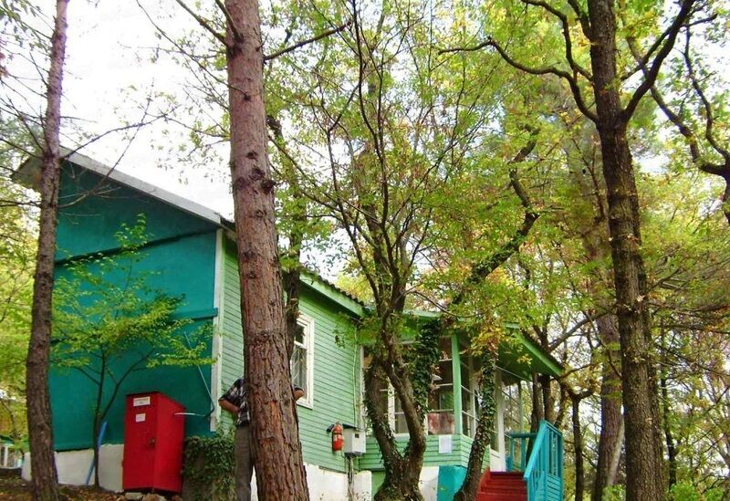 Двухкомнатный домик (без соседей) с кухней, посудой, электрочайником, свч, тв, кондиционером, холодильником, верандочкой, душем и туалетом.