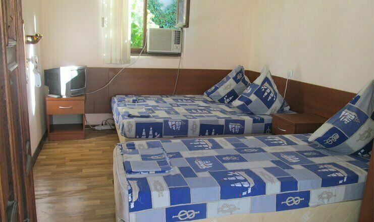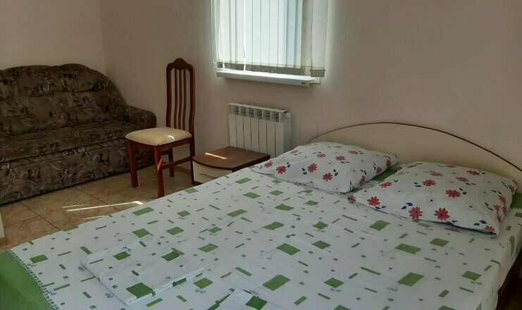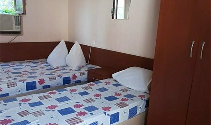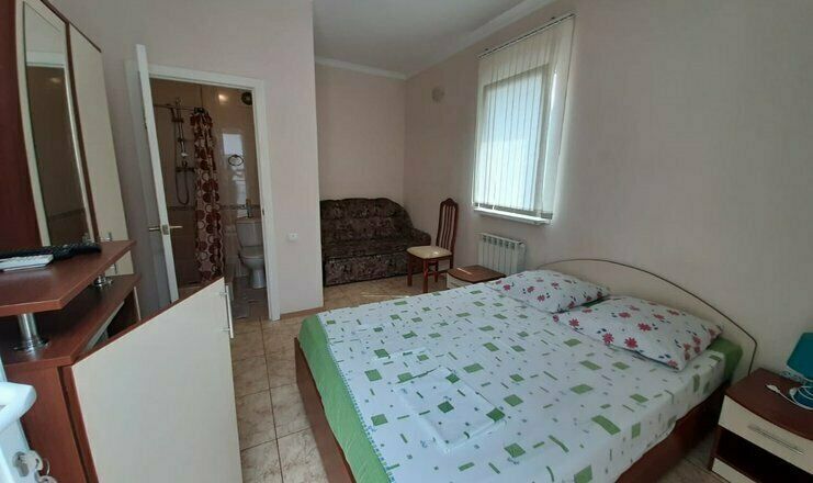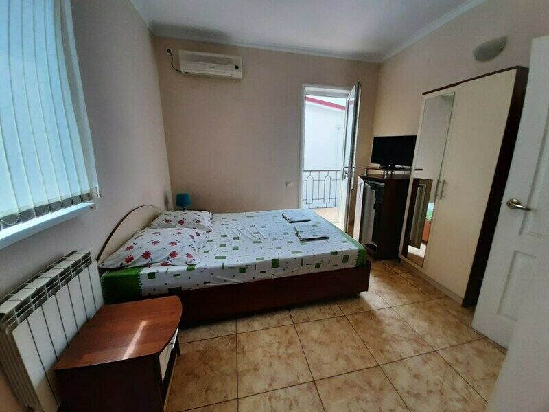 Кровать двуспальная и одна односпальная, тумбочки прикроватные, шкаф, кондиционер, телевизор,санузел (душ+туалет) НА ЭТАЖЕ