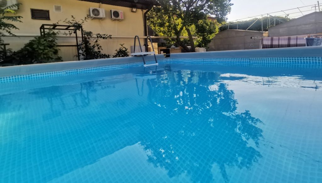 Тип бассейна: открытый бассейн, каркасный бассейнРядом с бассейном: шезлонгиПериод работы: летний сезон -