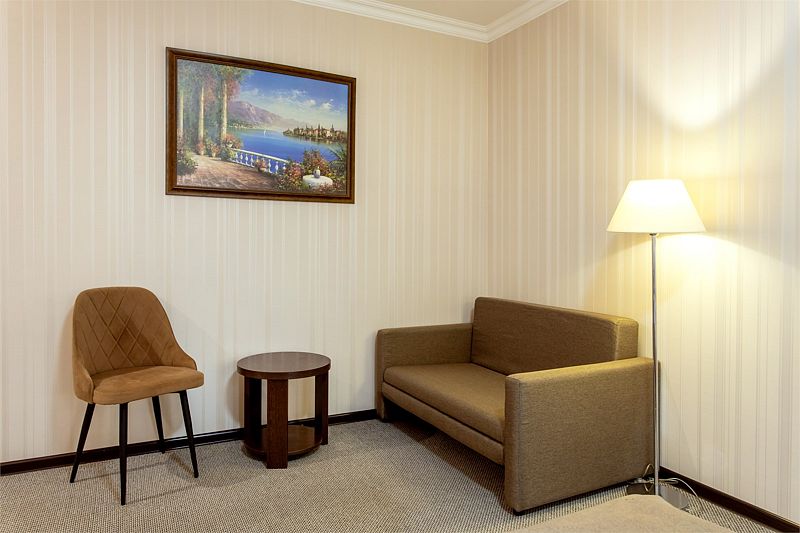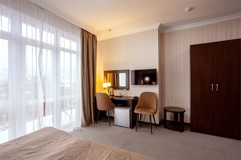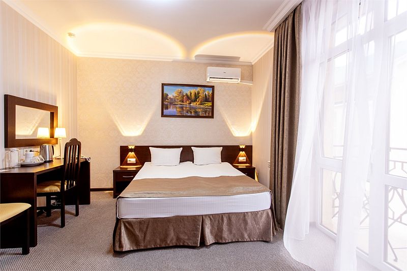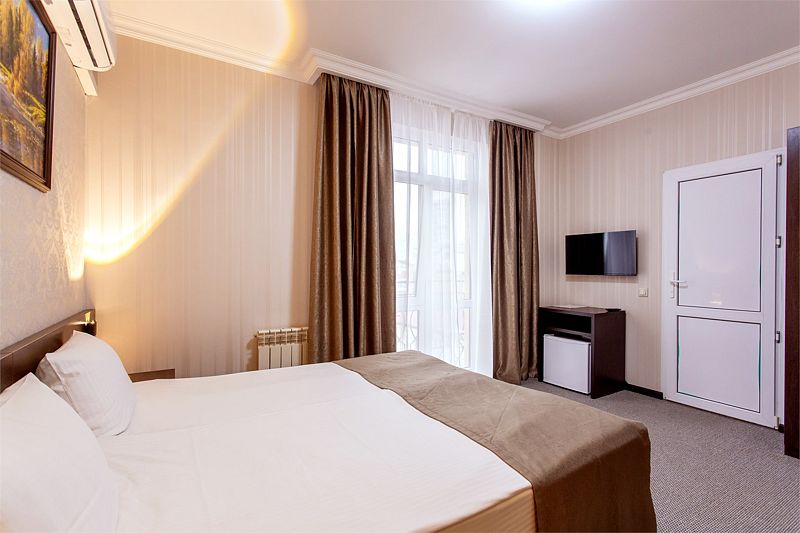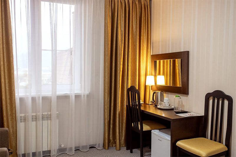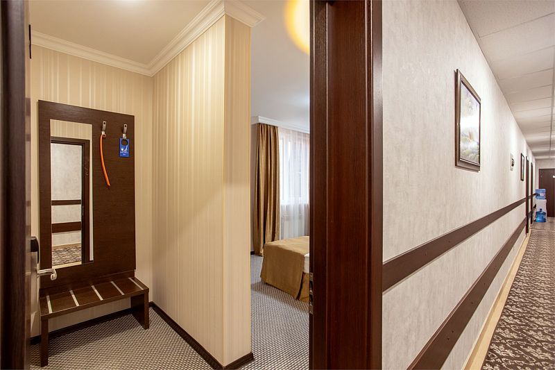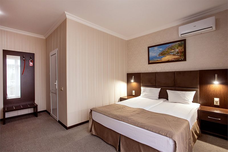Отель представляет собой пятиэтажное здание, расположенное на огороженной территории с ухоженными газонами и зелеными насаждениями. Жилой фонд отеля может разместить более 60 человек. Просторные, комфортабельно меблированные номера оснащены всем необходимым: сплит-системой, телевизором, холодильником, сейфом и Wi-Fi. В каждом номере имеется отдельный санузел с душем, феном и туалетными принадлежностями.