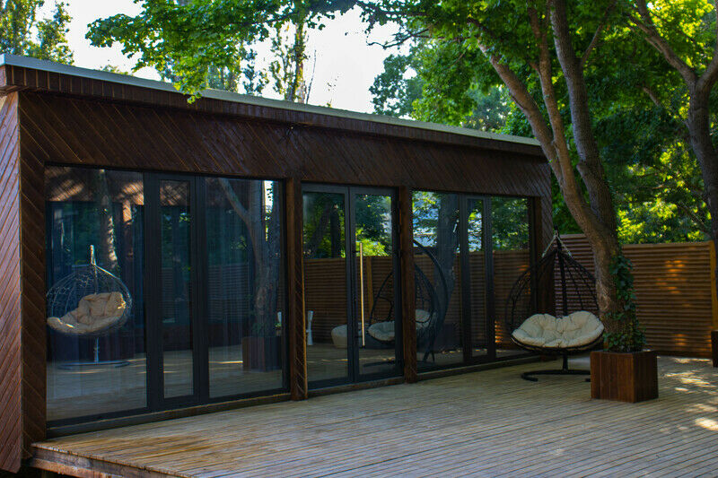 Площадь одного шале 40 м2 (рассчитан на 4 человек), есть возможность добавить дополнительные места.