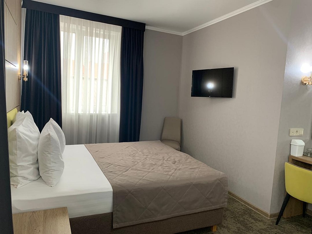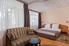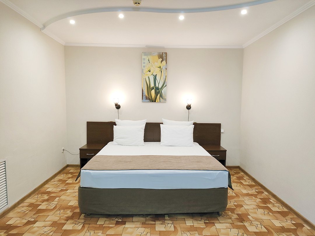 Однокомнатный номер с ванной комнатой и балконом расположен в корпусе №1. В номере: двуспальная кровать с ортопедическим матрасом или две раздельные кровати, которые при желании можно сдвинуть, прикроватные тумбочки, ЖК телевизор, шкаф, стол, холодильник, чайник, сейф, сплит-система, напольная раскладная сушилка.