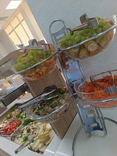 Читать полностьюС 1 июня по 30 сентября в пансионате «Геленджик» действует система трехразового питания «Шведский стол». В меню входят холодные и горячие закуски, разнообразные салаты, супы и вторые блюда из мяса, рыбы и птицы. Гости могут выбрать гарниры, свежие фрукты и овощи, а также молочные и кисломолочные продукты.
