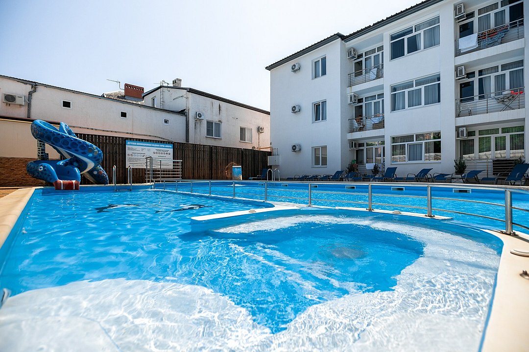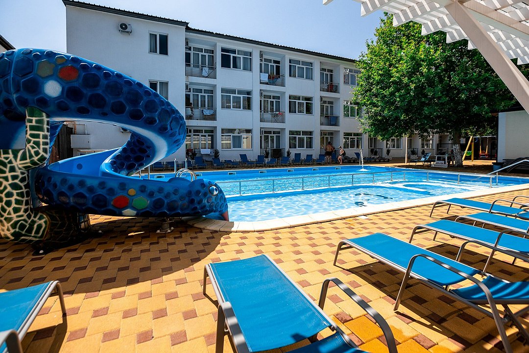 Рядом с бассейном: шезлонги, зонтикиТемпература в бассейне: 24 °CРазмеры: 9 x 15 мПлощадь: 135 м²Время работы: от 09:00 до 20:00Глубина: 140 смПериод работы: от 1 июня до 30 сентября, летний сезонПросторный открытый бассейн, где каждый может насладиться плаванием в комфортных условиях, не мешая другим отдыхающим. Вокруг бассейна обустроена зона с противоскользящей плиткой, по которой приятно и безопасно ходить даже босиком.