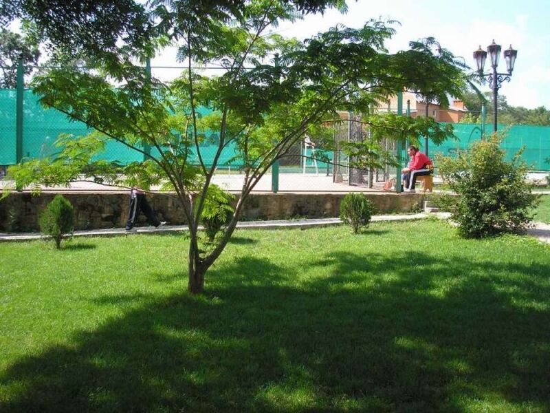 Площадь пансионата составляет 9 гектар. на ней расположены жилые коттеджи, а также площадка для детских игр и столовая. Есть возможность поиграть в бадминтон и большой теннис на кортах.