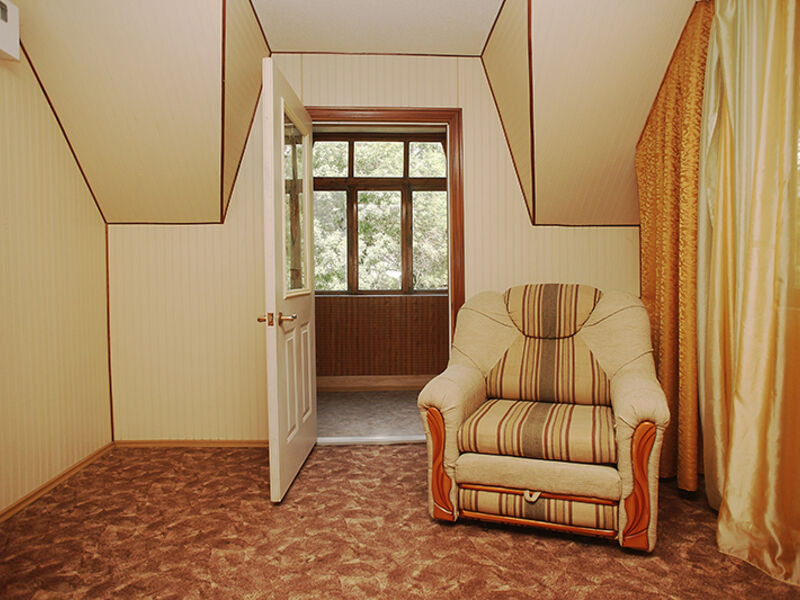 Номера данной категории располагаются по 2 в каждой половине домика. Один номер на первом этаже, второй номер на втором этаже. Кухня и раздельный санузел общие, находятся на 1-м этаже.
