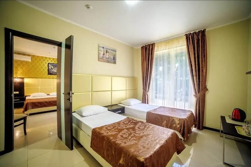 Путешествие с семьейОтзыв об отелеОтдыхали семьей в начале июля в этом отеле..Были с двумя детками 6 и 9 лет ...Понравилось все...номера просторные,балкон огромный квадратов 20...!!Белье белоснежное...Девчонки которые убирают умнички...мы даже не замечали когда они убирали...настолько все быстро и незаметно..!Феи чистоты!!Детская комната большая, красивая.,радует наличие воспитателя.,всегда может присмотреть за детьми...Столовая недорогая и все есть...на любой вкус,по домашнему..наличие трансфера очень радует и в отель и обратно..В общем все очень понравилось..Неделя пролетела незаметно..!Обязательно сюда еще вернемся!Спасибо всем.