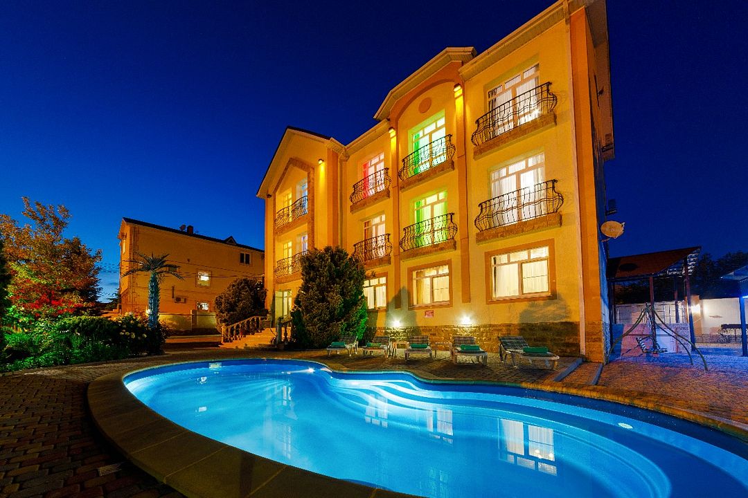 На территории гостевого дома находятся подогреваемый сезонный бассейн, детская игровая зона с горкой, домиком и батутом, мангалы, уютные беседки и просторная парковка (за дополнительную плату). Возможен заказ трансфера от аэропорта и ж/д вокзала.