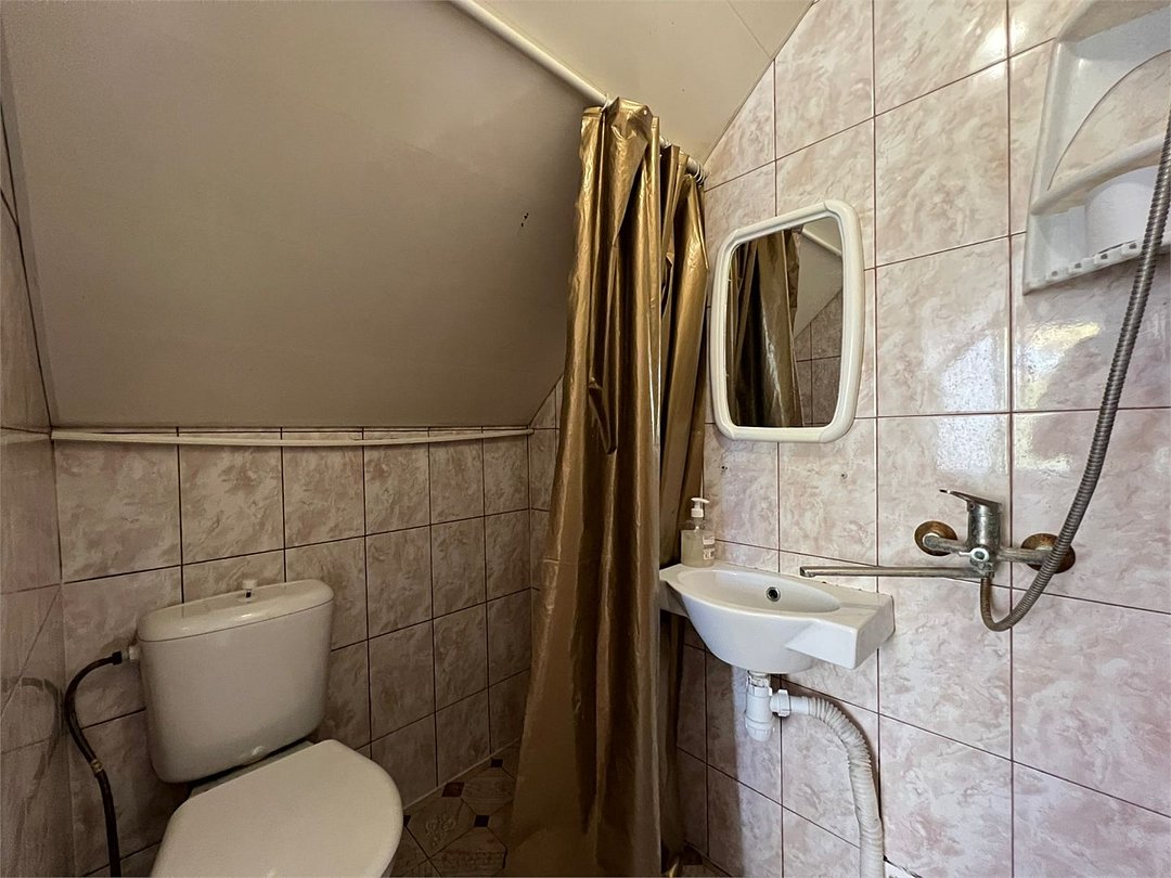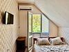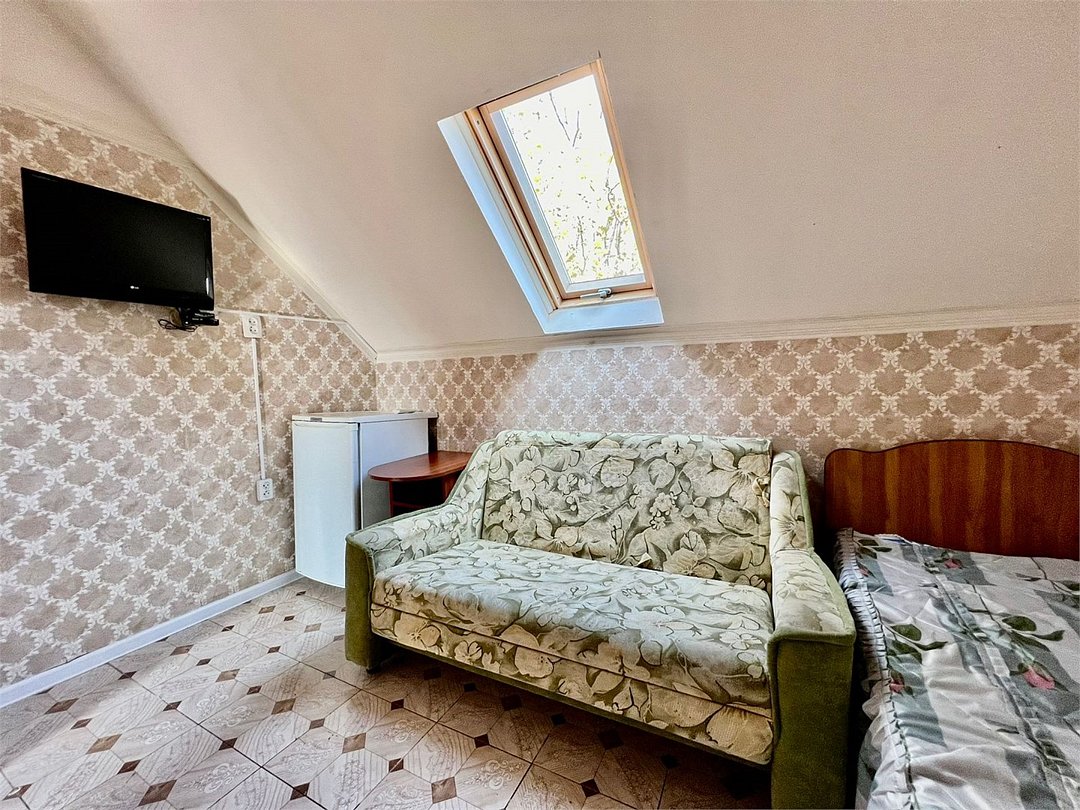 Wi-Fi, холодильник, банные полотенца, полутораспальная кровать, шкаф для одежды, вешалки, журнальный столик, зеркало, унитаз, раковина, душ, вид на город, плиточное покрытие, стаканы, тумба, туалет, сплит-система, диван-кровать, телевизор с плоским экраном, вид на горы, мансардные окна, мыло, можно с питомцамиВ гостиничном номере