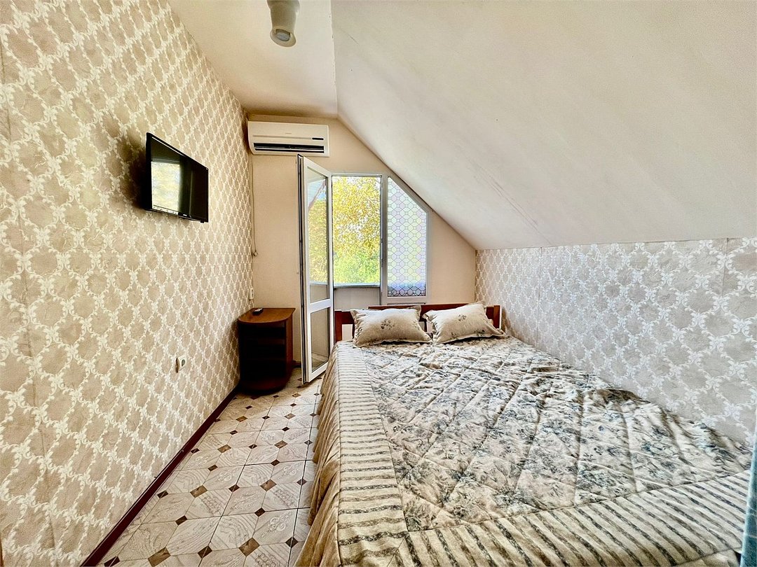 Уютный номер (свой санузел и душ). Живописная мансарда с «французским балконом» и видом на город и горы. Очень удобное расположение в центральной части геленджика и пешей доступности к морю, рынку, магазинам, кафе, ресторанам, спортивным и детским площадкам, всевозможным развлечениям. Недалёко 2 круглосуточных супермаркета. Парковка у дома (через дорогу есть охраняемая). Есть тихий внутренний дворик. Гостевая кухня, есть чайник, утюг, посуда, стиральная машина. В номере кондиционер, холодильник, телевизор, wi-fi, постельное бельё, полотенца и средства гигиены.Услуги и удобства