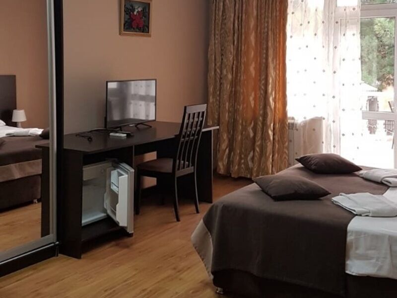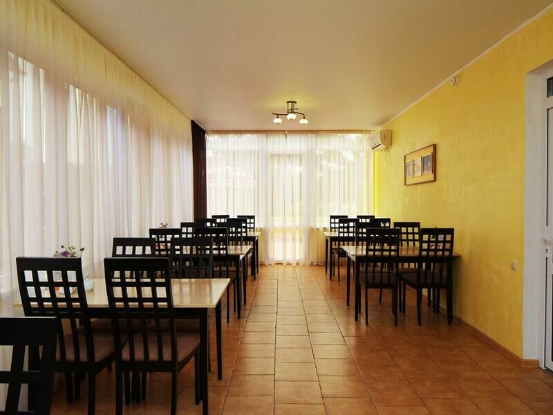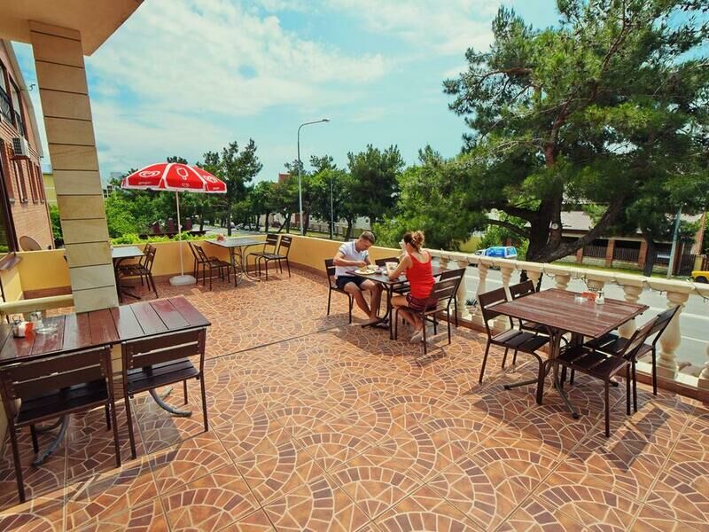 Питание можно выбрать 3-разовое или ограничиться завтраком. В корпусе есть кафе, а во дворе оборудована летняя площадка питания с барбекю. Рядом с отелем – продуктовый магазин.