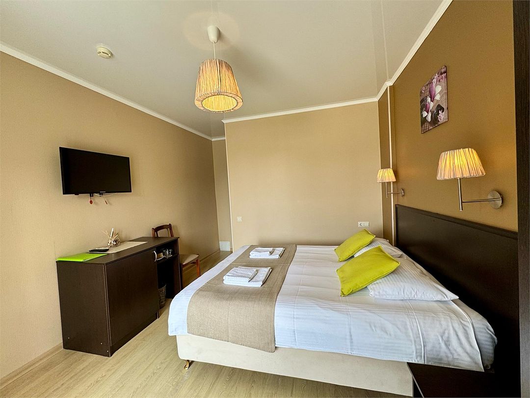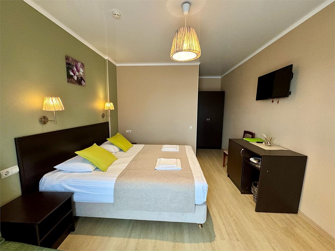 Путешествие с семьейХороший отельОтдыхали с женой и ребенком 4 суток. Все отлично, все продумано. Местоположение удачное для тех, кто передвигается на машине. В шаговой доступности городские пляжи, набережная, где в Гелене кипит жизнь. Продуман вопрос питания- на 2 и 3 этажах полноценная кухня с газовой плитой. Есть некоторые пожелания. Мы жили на 4этаже, номер мансарда. Телевидение неплохо было бы кабельное, а то по антенне снегопад смотреть как- то...Ну и в окнах мансардных жалюэи бы... А то днем ребенка уложить проблемно, да и жарко.В остальном- рекомендую. Чище гостиниц в этом ценовом диапазоне я в Гелене и окрестностях не видел.