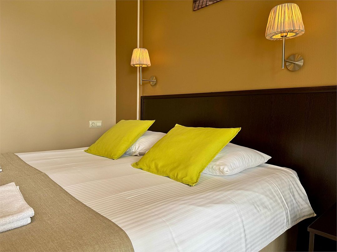 Двухместный номер с одной двуспальной кроватью или двумя односпальными кроватями (на выбор). Имеется маленький индивидуальный балкон без мебели.Услуги и удобства