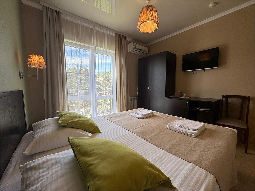 Wi-Fi, интернет, фен, банные полотенца, гигиенические средства, двуспальная кровать, две односпальные кровати, тумбы, шкаф для одежды, зеркало, набор посуды, сейф, чайник, унитаз, раковина, отопление, душ, вид на город, кулер на этаже, ламинат, стаканы, столовые приборы, стул, туалетные средства, туалет, сплит-система, сушилка для белья, диван-кровать, телевизор с плоским экраном, мини-холодильник, москитная сетка, вид на горы, номер для некурящих, рабочий стол, уборка номера, вешалки-плечики, мылоВ гостиничном номере