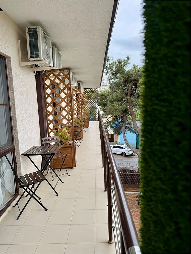 Двухместный номер с одной двуспальной кроватью или двумя односпальными кроватями (на выбор). На общем балконе имеются собственный маленький стол и два стула.Услуги и удобства