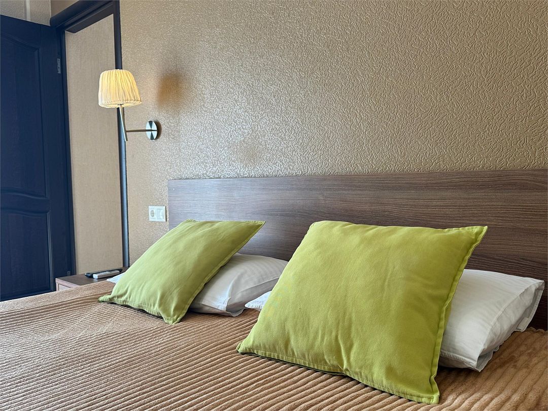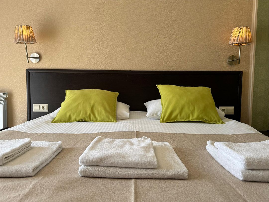 Двухместный номер с одной двуспальной кроватью или двумя односпальными кроватями ( на выбор), с дополнительным местом креслом-кроватью (80х200), с общим балконом и индивидуальной мебелью на балконе.Услуги и удобства