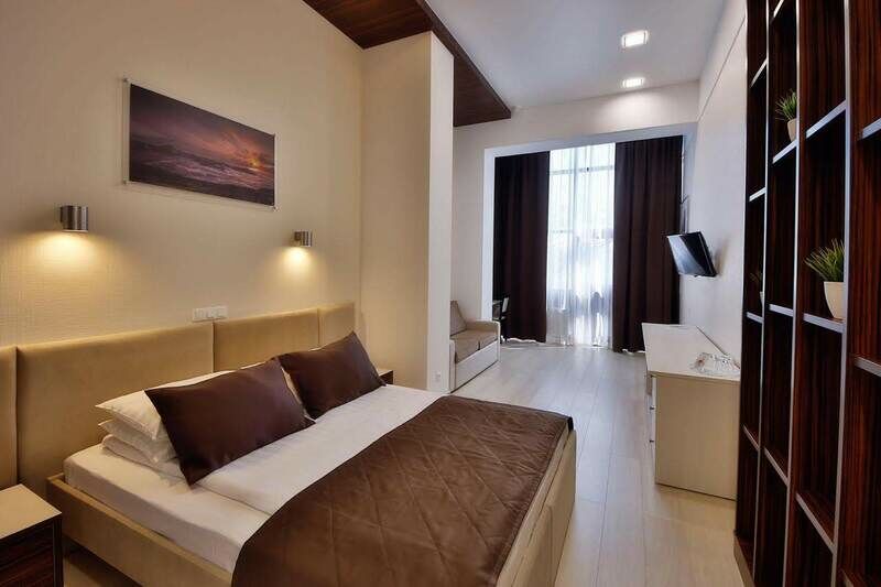 май 2021 г.Отличный, свежий отель!!Мы только что заселились в этот отель, фото совершенно не передают реальность! Отель замечательный!!! Очень чистый, что немыслимая редкость, а я пишу это как аллергик! Расположен в тихом месте, территории, кажется нет, но море буквально в 1 минуте пешком. Есть номер студия на третьем этаже, разница в цене с обычным номером рублей 300, но это какой-то наикрутейший номер с потолками безумной высоты, огромными окнами, диванчиком и душевой кабиной большой. Очень современно!!!! Мы три отеля сменили в процессе поиска, фото везде отфотошопленные, а в реальности просто слёзы. Очень рекомендуем!!!!! Особенно тем, кто ценит чистоту и новизну!!!
