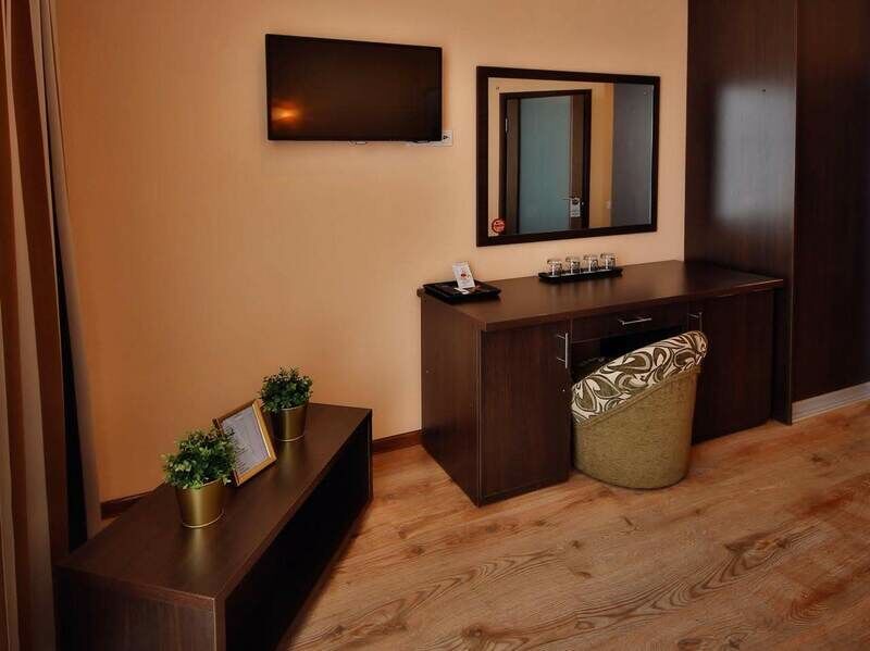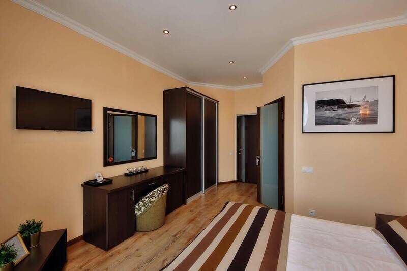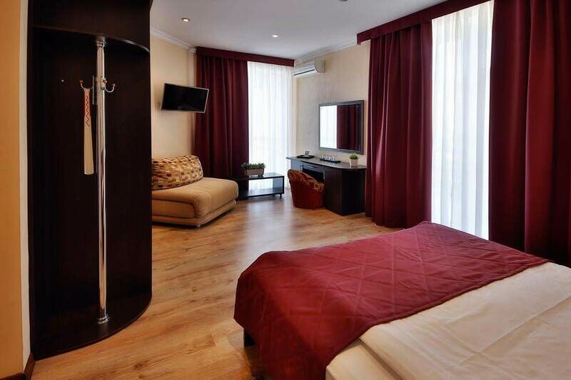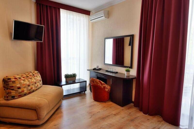 июль 2020 г.Отель европейского классаОтдыхали в этом отеле с 18 по 25 июля 2020 г. Брали два номера делюкс на 3 этаже, без балконов, но с панарамными окнами. Отель очень чистый, уютный. Приятный улыбчивый персонал. На черноморском побережье отдыхали впервые, т. к. границы сейчас закрыты. По этому сравниваю номера с зарубежными. В номере есть сейф, холодильник, фен, tv, wi-fi, электр.сушилка, кондиционер, полотенца для пляжа. Чайник с чашками попросили - сразу принесли. За границей каждый день кладут пакетики с кофе и чаем. Не хватало на мой взгляд завтраков и лифта (хоть и 3 этажа, но багаж не удобно тащить).