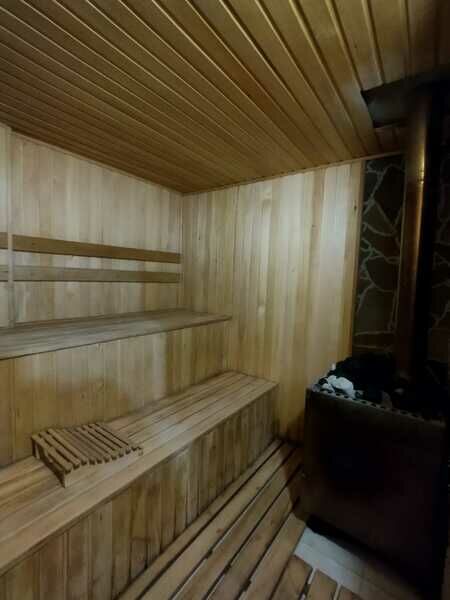 На территории коттеджа на Пограничной есть открытый бассейн, функционирующий в теплое время года. Организована зона для приготовления шашлыков, есть беседки для отдыха. На первом этаже дома есть сауна. Работает бесплатная парковка для гостей. На территории пляжа можно арендовать зонтики, шезлонги. По желанию можно заказать трансфер.
