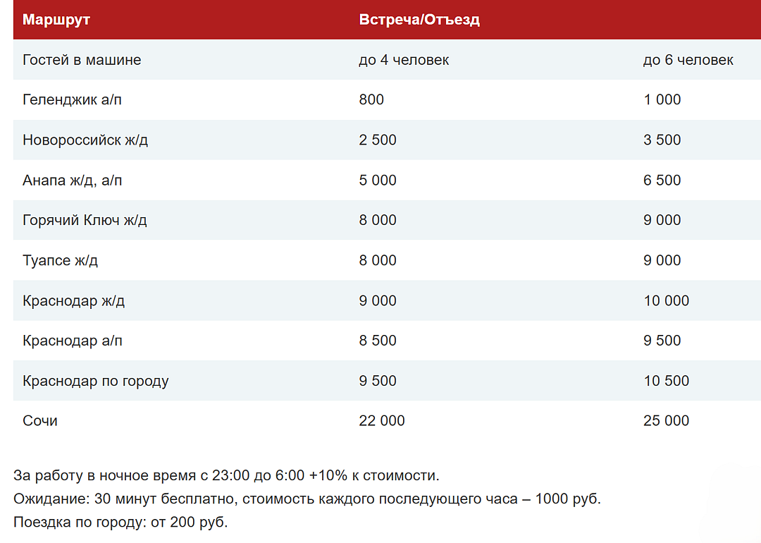 С мая по сентябрь предоставляется маршрутное такси — комфортабельный 16–местный автобус для ежедневной встречи гостей у железнодорожного вокзала Новороссийска. Время прибытия: 6:50 и 12:30.