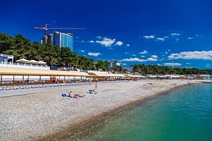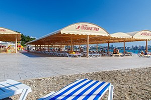 Читать полностьюГалечный пляж санатория приглашает гостей насладиться купанием в Черном море, солнечными ваннами и свежим морским воздухом. На пляже есть шезлонги с матрасами, теневые зонты, душевые кабины, раздевалки, туалеты, пункт проката полотенец и камера хранения.