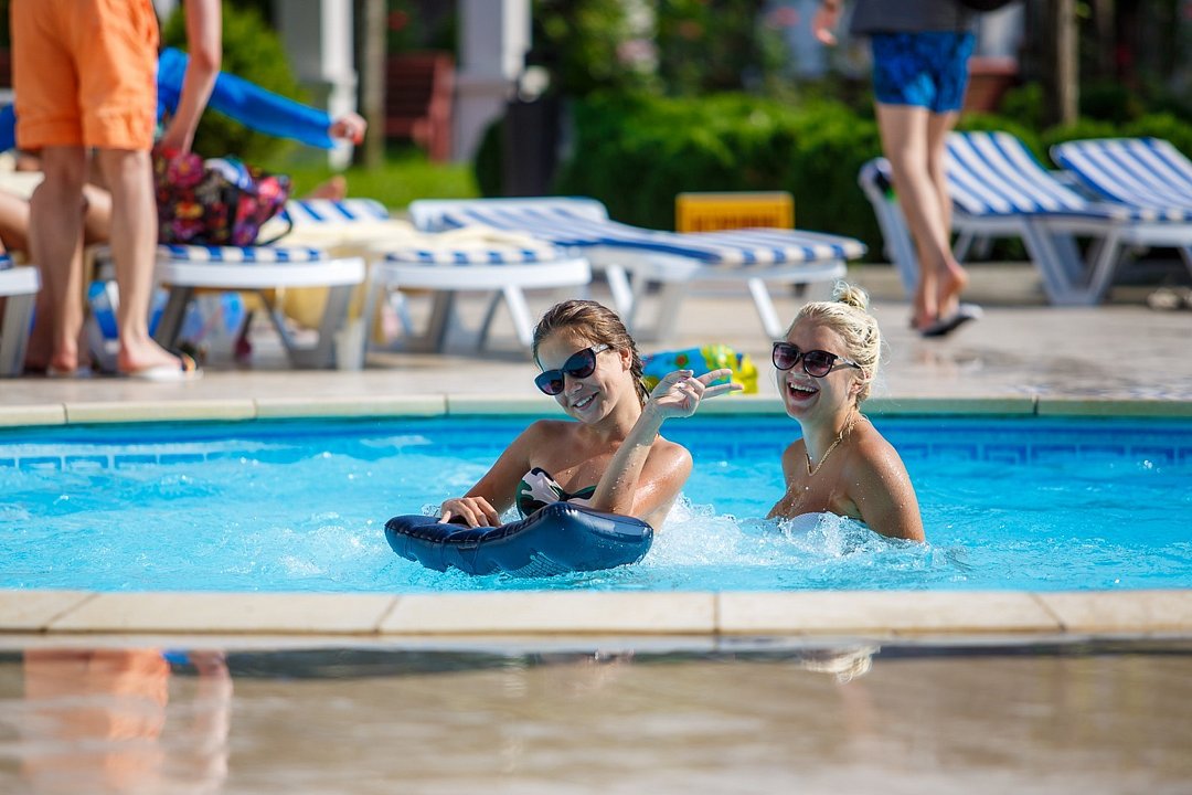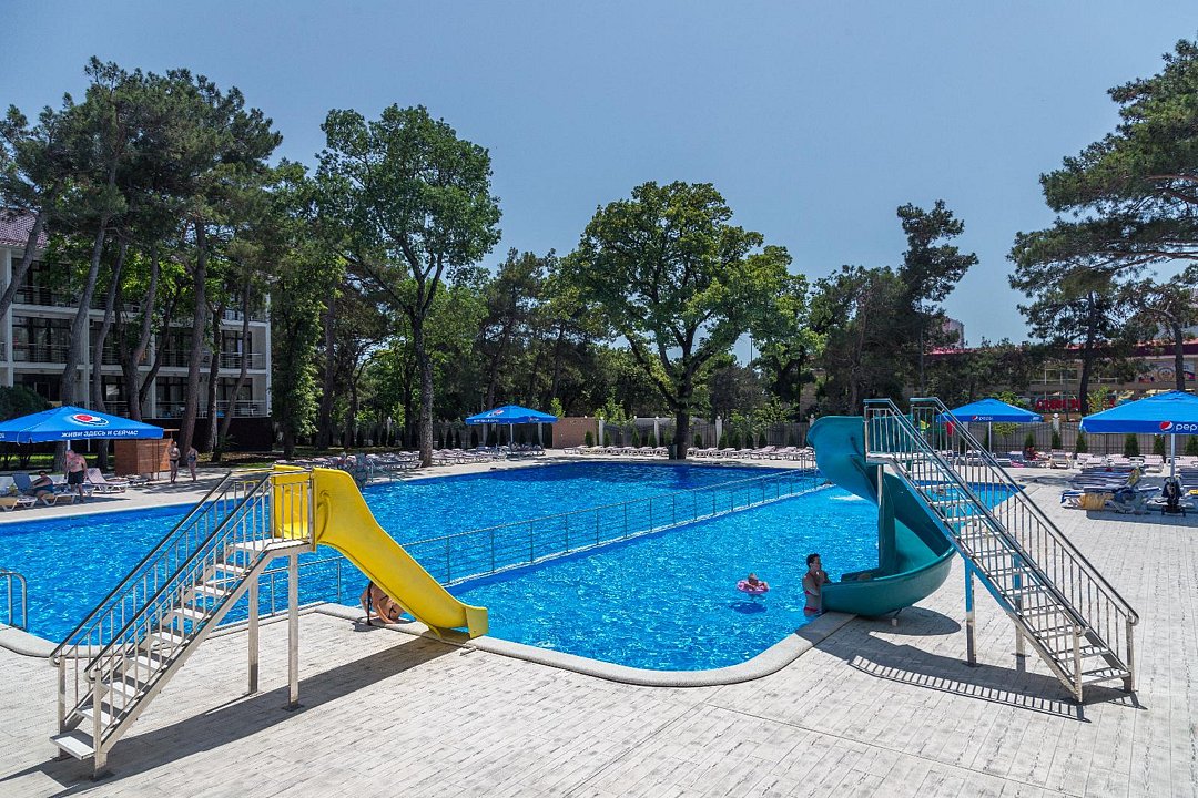 Тип бассейна: открытый бассейнВода в бассейне: подогреваемый бассейнРядом с бассейном: шезлонги, полотенцаПериод работы: от мая до октябряНа территории санатория, на первой береговой линии, находится открытый семейный бассейн. Весной и осенью вода в нем подогревается. Бассейн разделен на две зоны: для взрослых и для детей, а также оборудован гидромассажными системами.