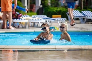 Санаторий «Красная Талка» предлагает своим маленьким гостям комфортное и безопасное времяпровождение благодаря открытому бассейну с водными горками. Удобно расположенный на территории детской площадки, он находится в непосредственной близости от игровой комнаты «Непоседы», создавая идеальные условия для активного отдыха.