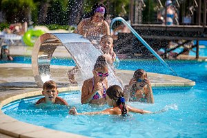 Тип бассейна: открытый бассейнВода в бассейне: подогреваемый бассейнРядом с бассейном: шезлонги, зонтики, полотенцаПериод работы: от мая до октябряНа второй береговой линии расположен семейный бассейн с водными горками и переворачивающимися ведрами; в межсезонье (весной и осенью) вода в нем подогревается для комфорта отдыхающих.