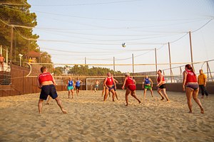 Взрослым санатория доступна песчаная площадка — идеальное место для активного отдыха и командных игр. Необходимый инвентарь выдается на спортивной площадке у сотрудника с 8:00 до 20:00.
