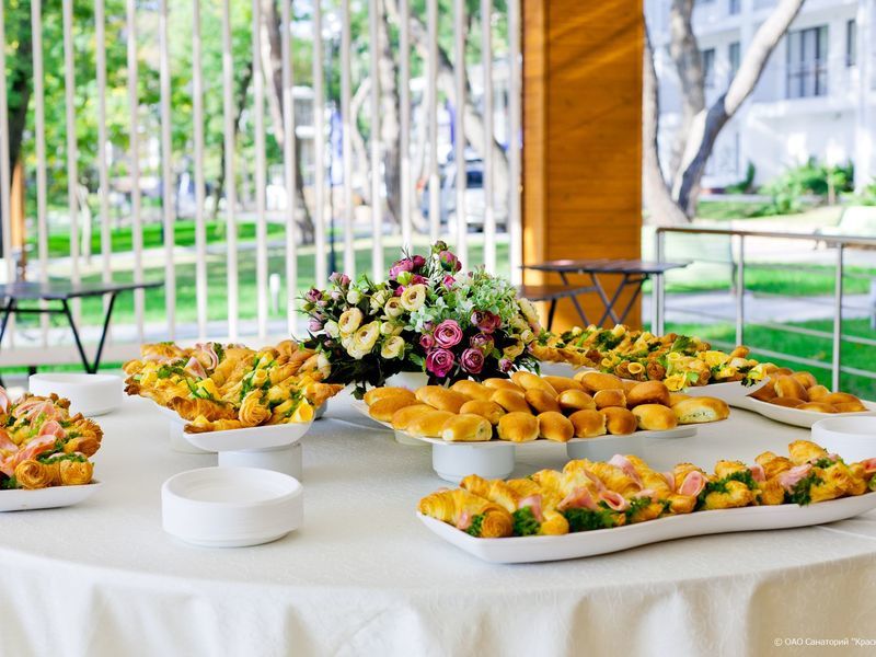 Читать полностьюСанаторий «Красная Талка» предлагает питание по системе полного пансиона — шведский стол с широким выбором горячих и холодных блюд, салатов, закусок, десертов и свежих фруктов. Блюда выставлены на линии в обеденном зале с посадочными местами, регулярно пополняются, а при желании гости могут получить помощь официантов; отдельной гордостью кухни является свежая выпечка собственной выпечки.