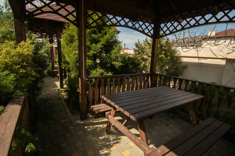 Для отдыхающих в пользовании общая кухня– столовая, в которой есть все необходимое для приготовления комфортных блюд. Во внутреннем дворе отеля есть палисадник, каменное барбекю и парковка. На всей территории предоставляется беспроводной доступ в Интернет.