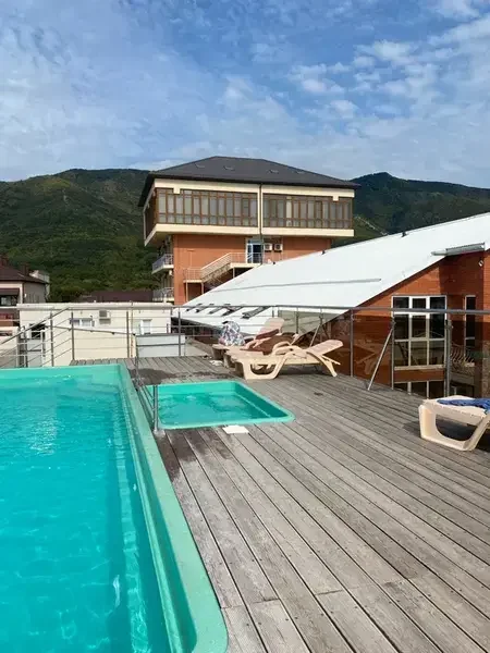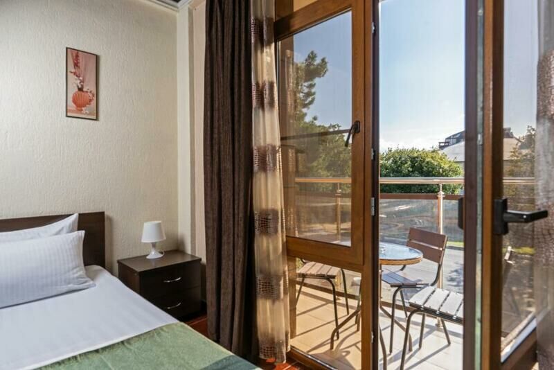 Путешествие с паройОтличный гостевой дом уровня отеляЖили в данном гостевом доме в июне 2022 года. Привлекло расположение - первая береговая линия. В отеле 2 бассейна с подогревом, чистые номера. В номере есть телевизор, холодильник, кондиционер, фен, полотенца, балкон со столиком и стульями. Приехали мы рано утром, заселение после 14:00, но нам предложили провести время у бассейна, отдохнуть на шезлонгах, пообедать в кафе на территории. Отличный сервис, хороший директор, который учёл все пожелания.