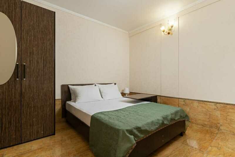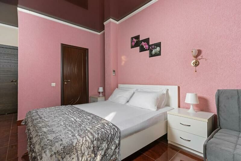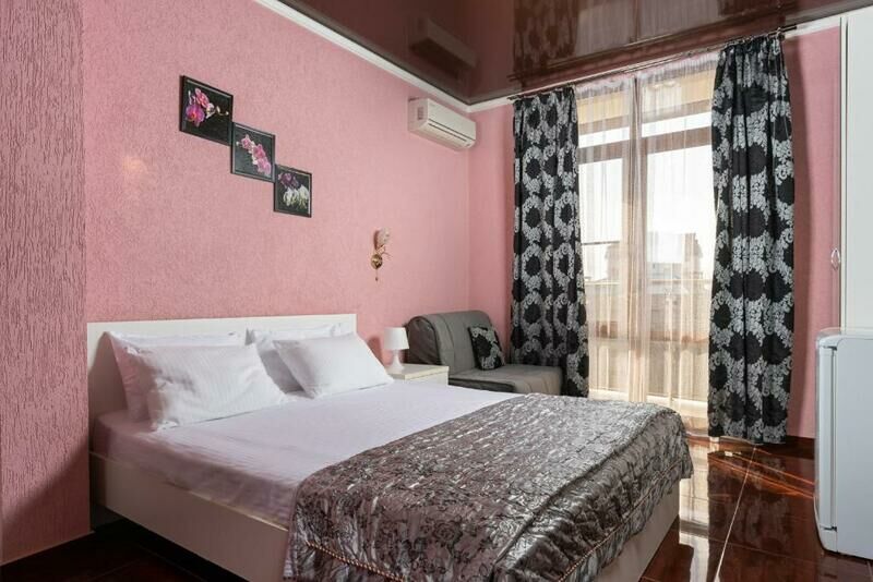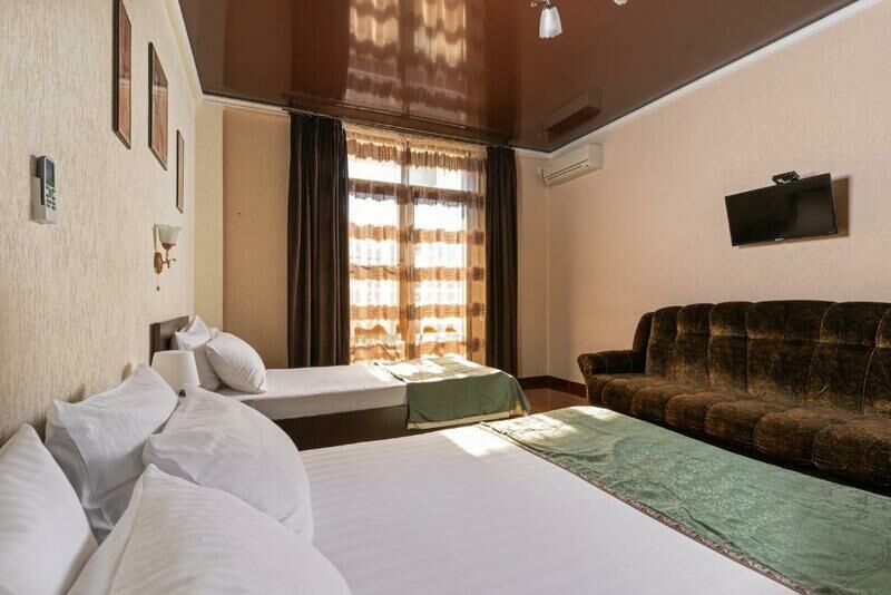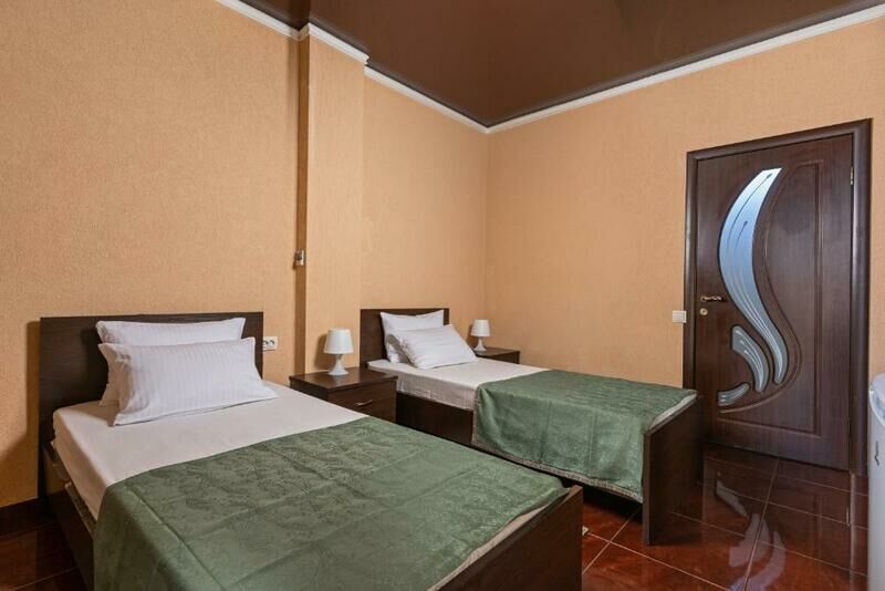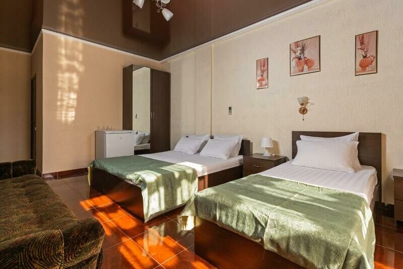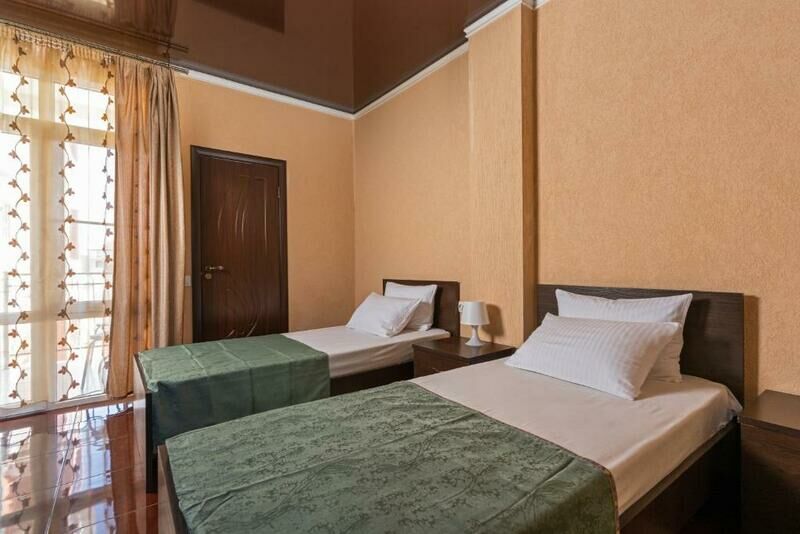 Трехэтажный корпус гостевого дома занимает закрытую территорию, расположенную среди малоэтажной застройки. Гостей ожидают комфортабельные номера разных категорий со стильным интерьером, выдержанном в шоколадно-оливковых оттенках. В каждом номере есть ванная комната с душем, сплит-система, телевизор и холодильник.