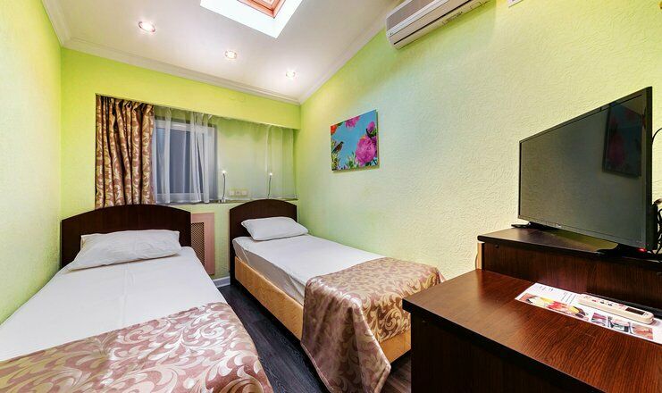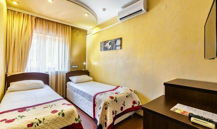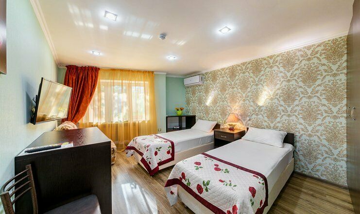 Двухэтажный корпус разместился в зеленом уютном квартале. Для отдыхающих подготовлено 24 комфортабельных номера, в некоторых имеются балконы. Все номера оснащены санузлом с душем, есть холодильник, телевизор и установлен кондиционер.
