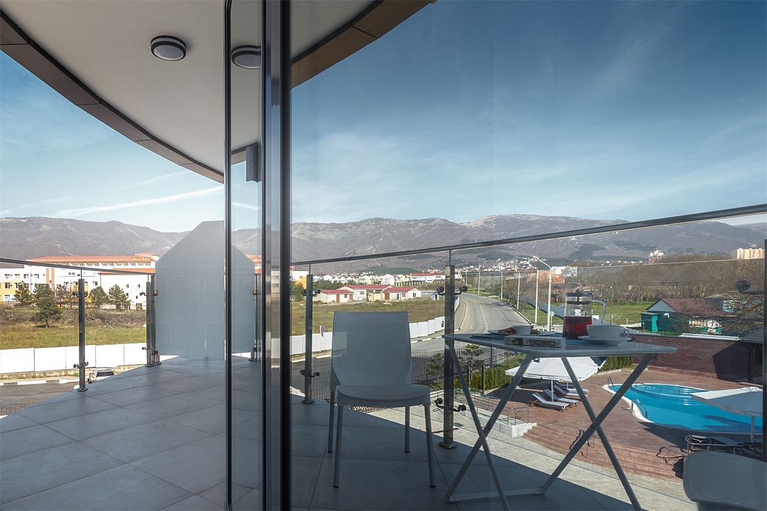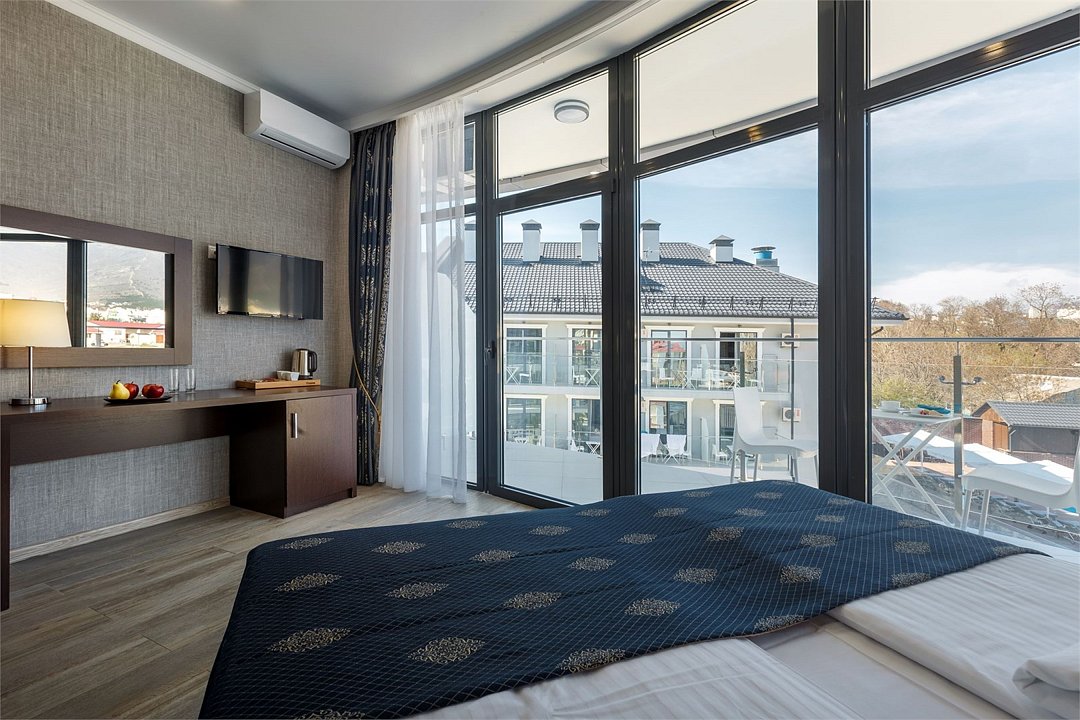 Его несомненный плюс - наличие просторного балкона. Идеальный выбор для тех, кто ценит личное пространство. Можно отдохнуть как одному, так вдвоем. Возможно создание доп. места. Максимальное количество гостей в номере категории Студио - 2 + одно доп.место в виде раскладной кровати (в том числе дети) Дети до 4-х лет проживают бесплатно.Услуги и удобства