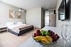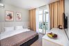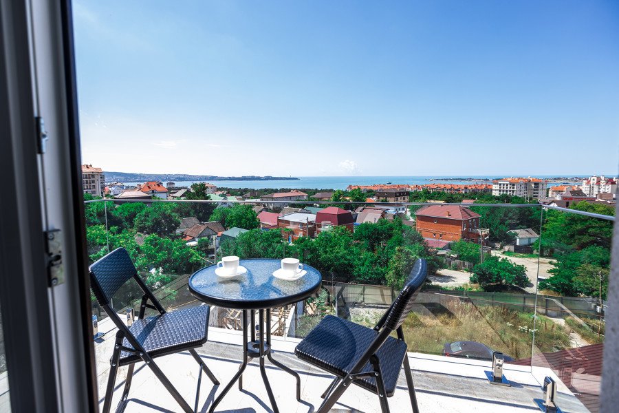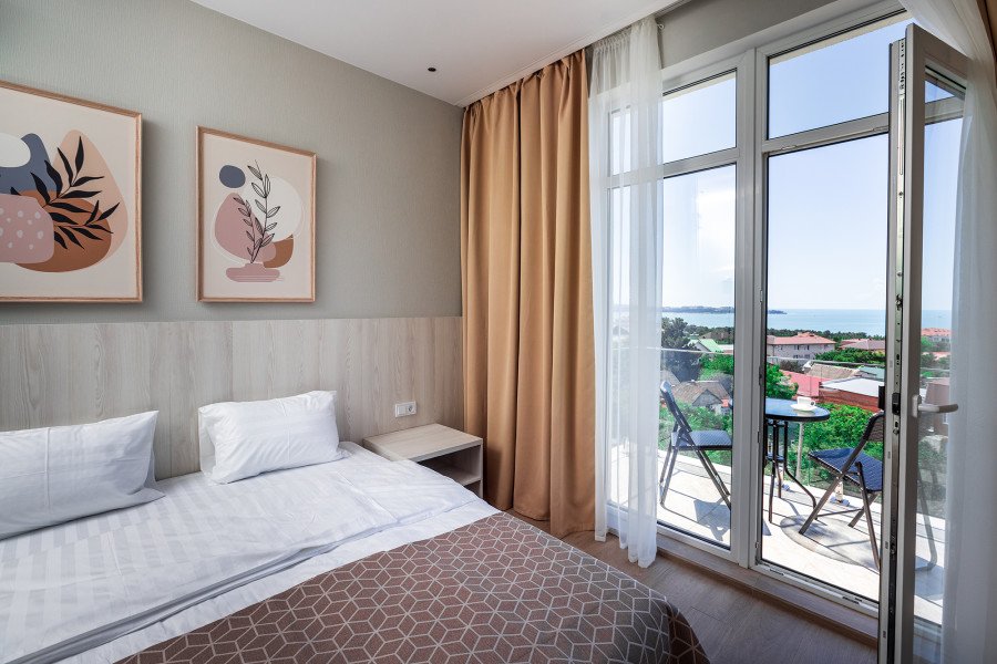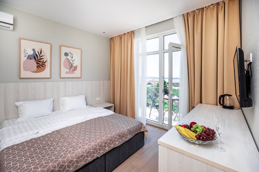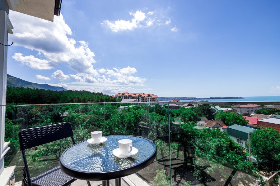 На балконе столик и стулья, вид на море или горы. В собственной ванной комнате :душ, туалет, комплект полотенец, туалетные принадлежности, фен. Бесплатный Wi-Fi и бесподобный вид с балкона. Завтрак включен в стоимость.