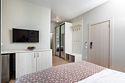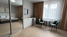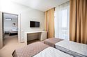 Двухкомнатный семейный номер, светлый, просторный. Оснащен: двуспальная кровать, две односпальные кровати, холодильник, электрический чайник, в каждой комнате телевизор с плоским экраном, шторы, шкаф-купе, кондиционер, розетки возле кровати, стол.
