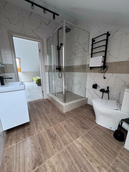 В собственной ванной комнате :душ, туалет, комплект полотенец, туалетные принадлежности, фен. Бесплатный Wi-Fi, завтрак включен в стоимость.