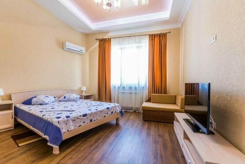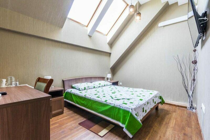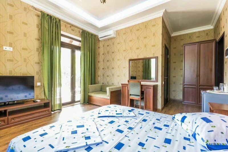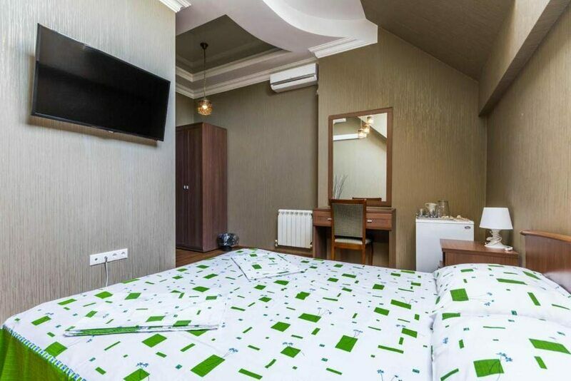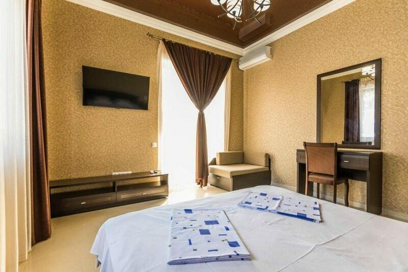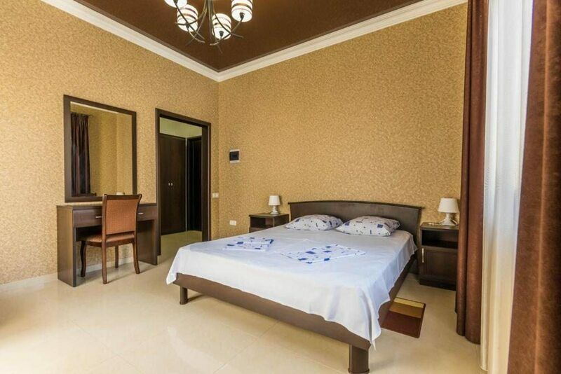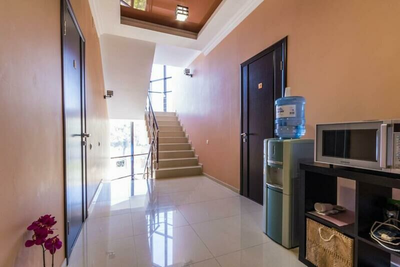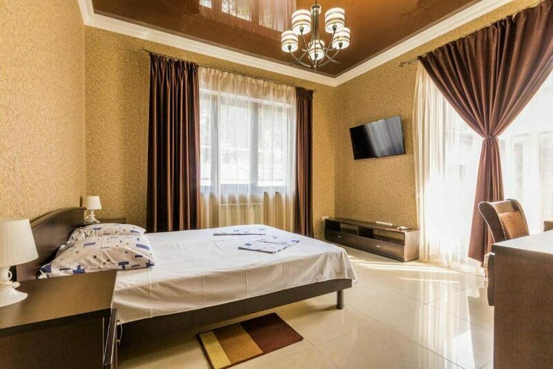 Трехэтажный корпус гостевого дома разместился на тихой зеленой улице города. Небольшой жилой фонд включает в себя 10 номеров, в каждом есть все необходимое для длительного пребывания: санузел с душем, удобные кровати, мебель для хранения, кондиционер, телевизор, мин-холодильник.