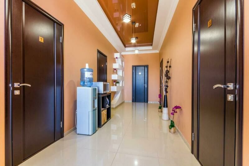 Для удобства гостей на этаже установлены кулер с водой, электрочайник и микроволновая печь. Возле гостевого дома во внутреннем дворике организована беседка со столом и скамейками. При наличии свободных мест автовладельцам доступна охраняемая парковка. Юные гости могут порезвиться на детской площадке.
