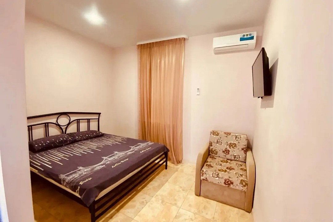 Сплит-система,мини-холодильник,ТВ,плита,с/у с душем,основные места-одна двуспальная кровать,дополнительные места-один раскладывающийся диван.
