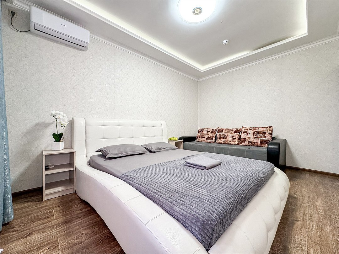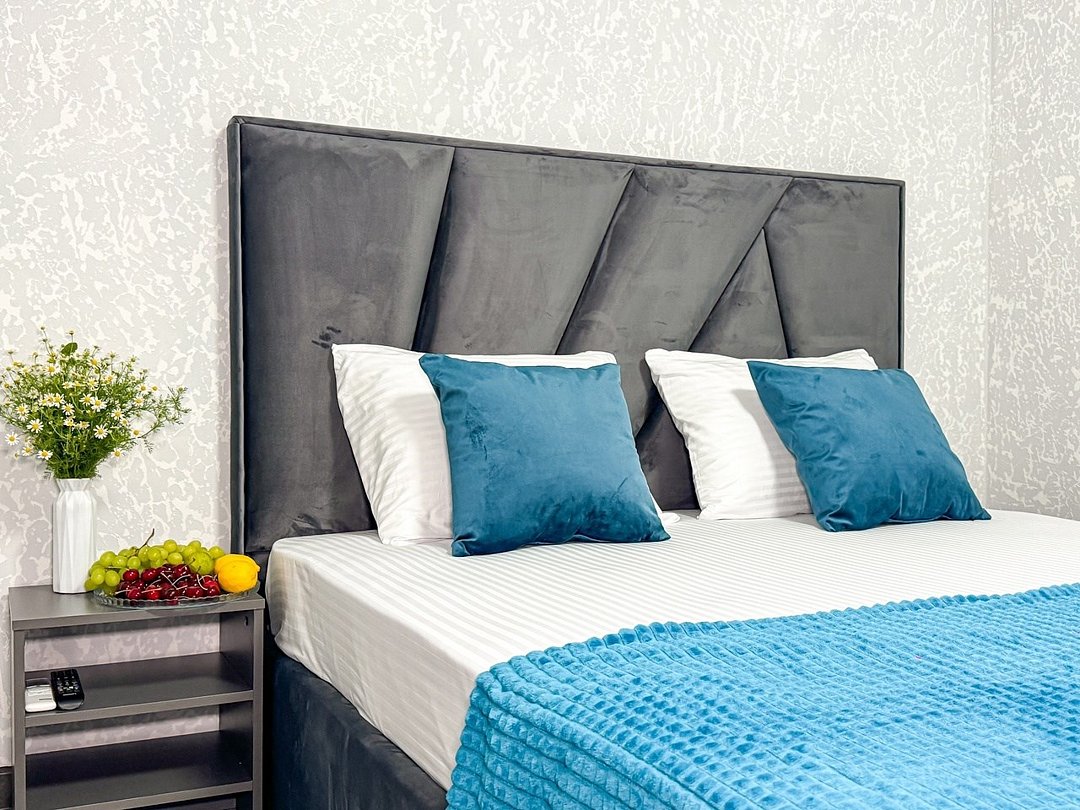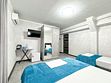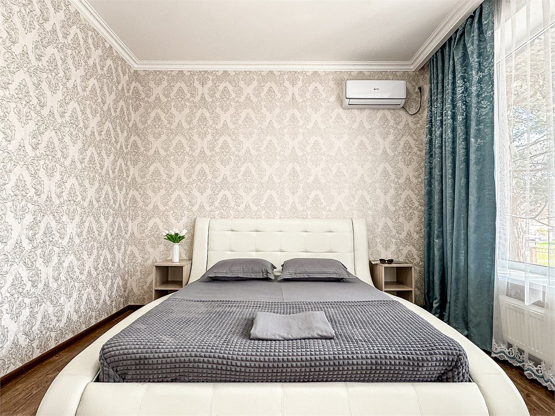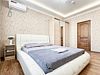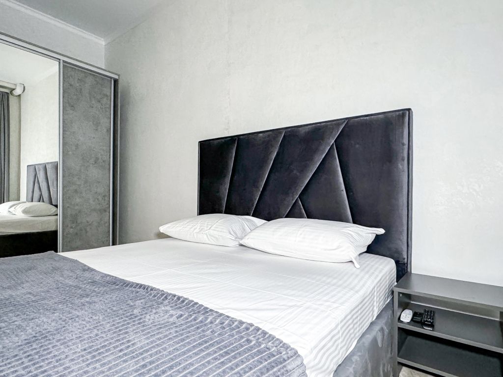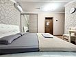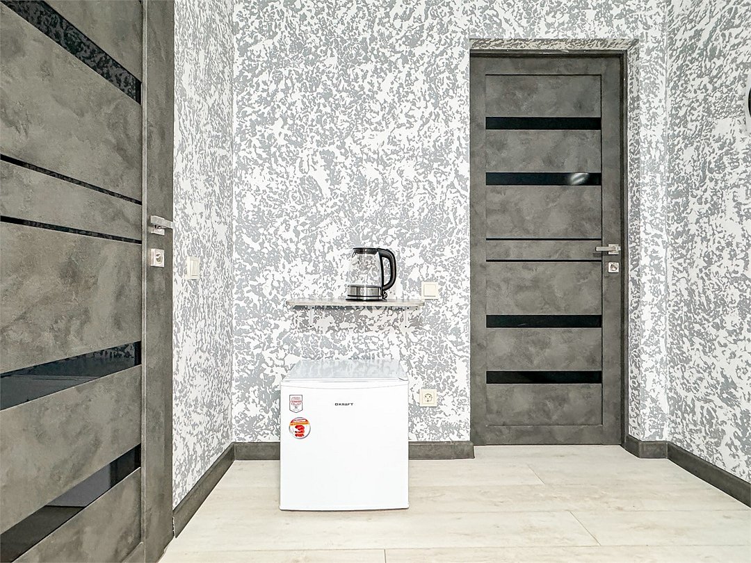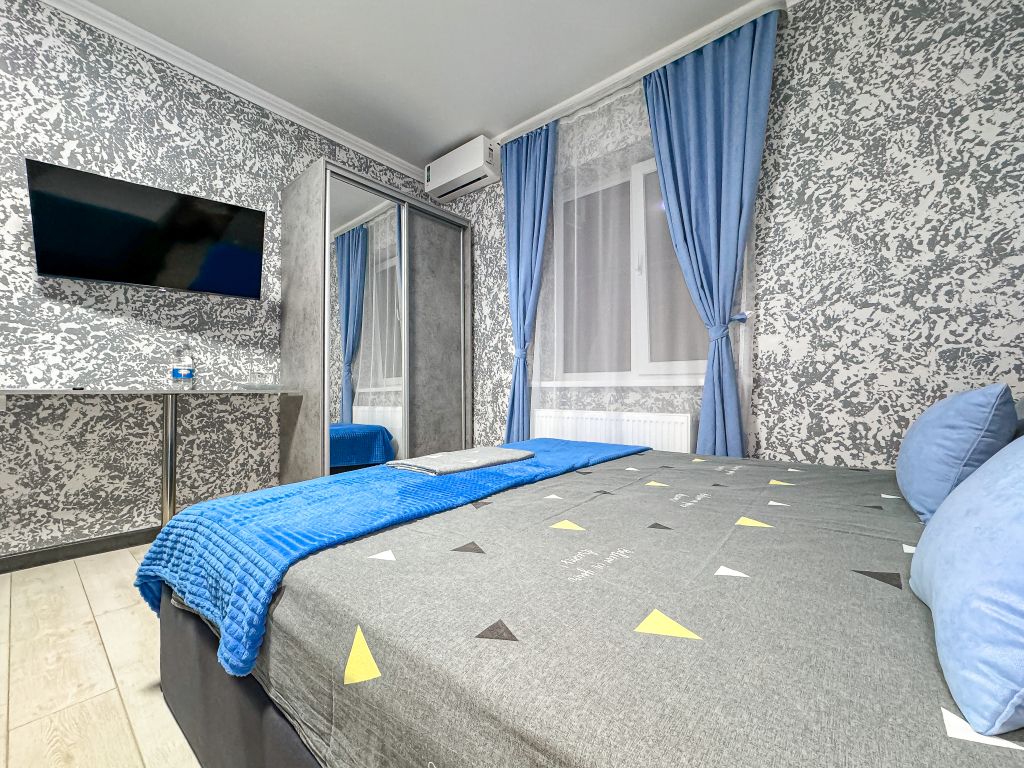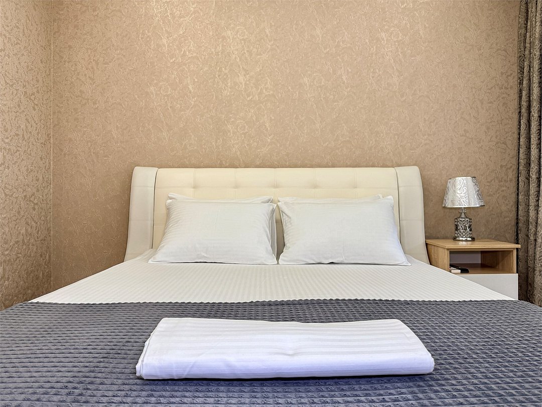 Однокомнатный для размещения семьи 2 взрослых и ребенок или 3 взрослых (+1 ребенок может ночевать с родителями). Спальные места: двуспальная кровать + дополнительное односпальное место (пуф-трансформер - раскладывается 76*200, нагрузка до 120 кг). В номере кондиционер, шкаф, холодильник, чайник, небольшой набор посуды, фен, телевизор.