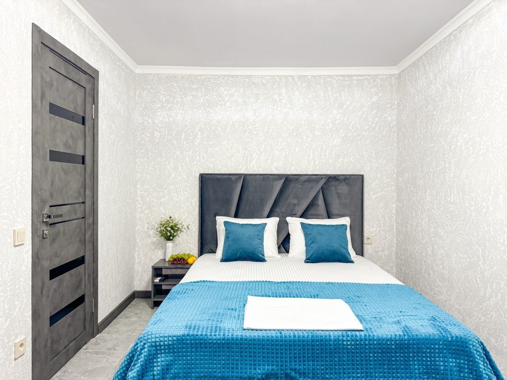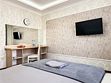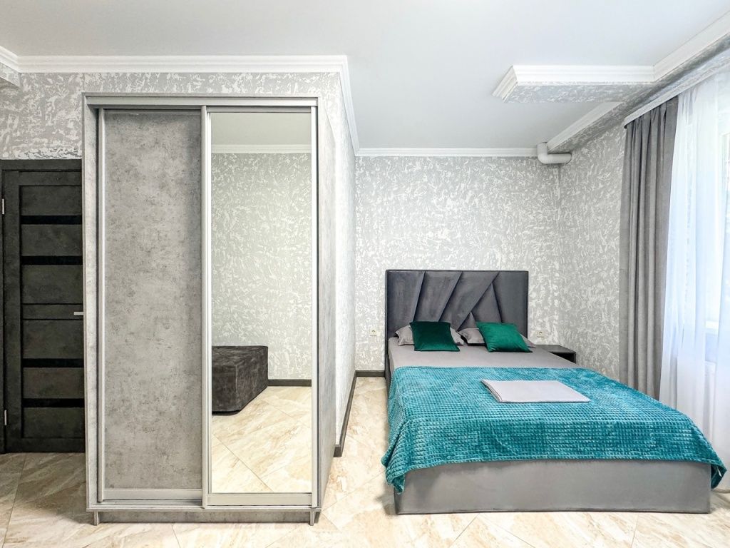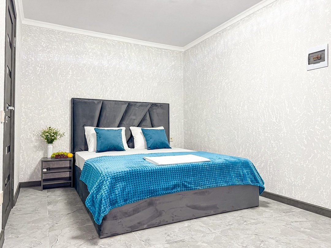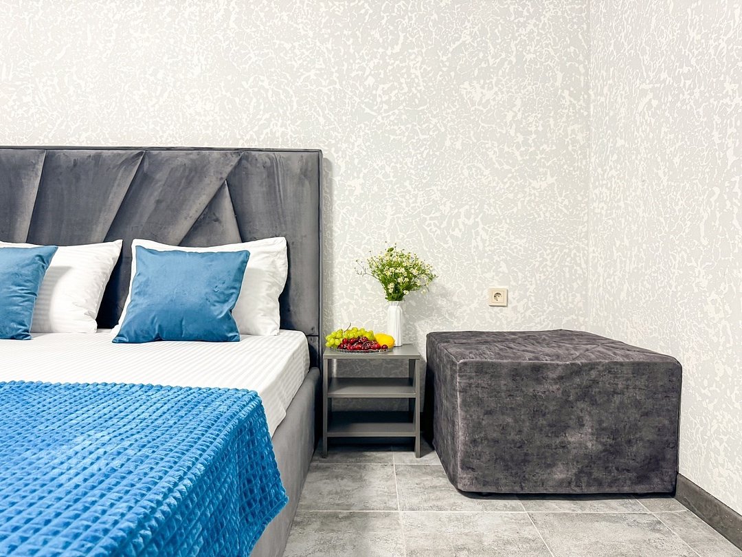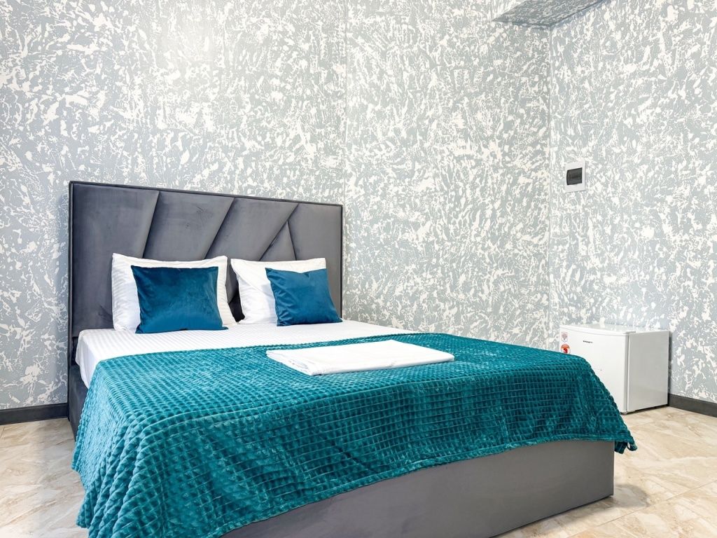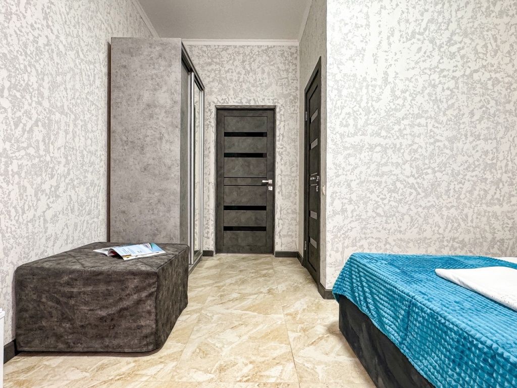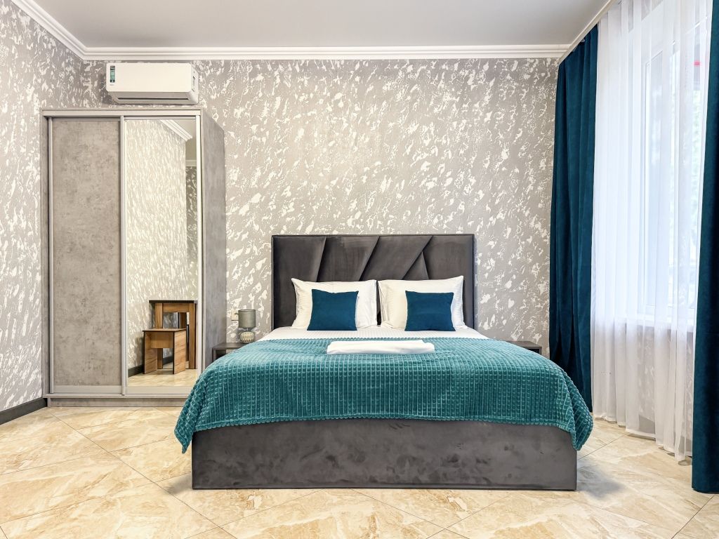 Однокомнатный для размещения семьи 2 взрослых и ребенок или 3 взрослых (+1 ребенок может ночевать с родителями). Спальные места: двуспальная кровать + дополнительное односпальное место (пуф-трансформер - раскладывается 76*200, нагрузка до 120 кг). В номере кондиционер, шкаф, холодильник, чайник, небольшой набор посуды, фен, телевизор.